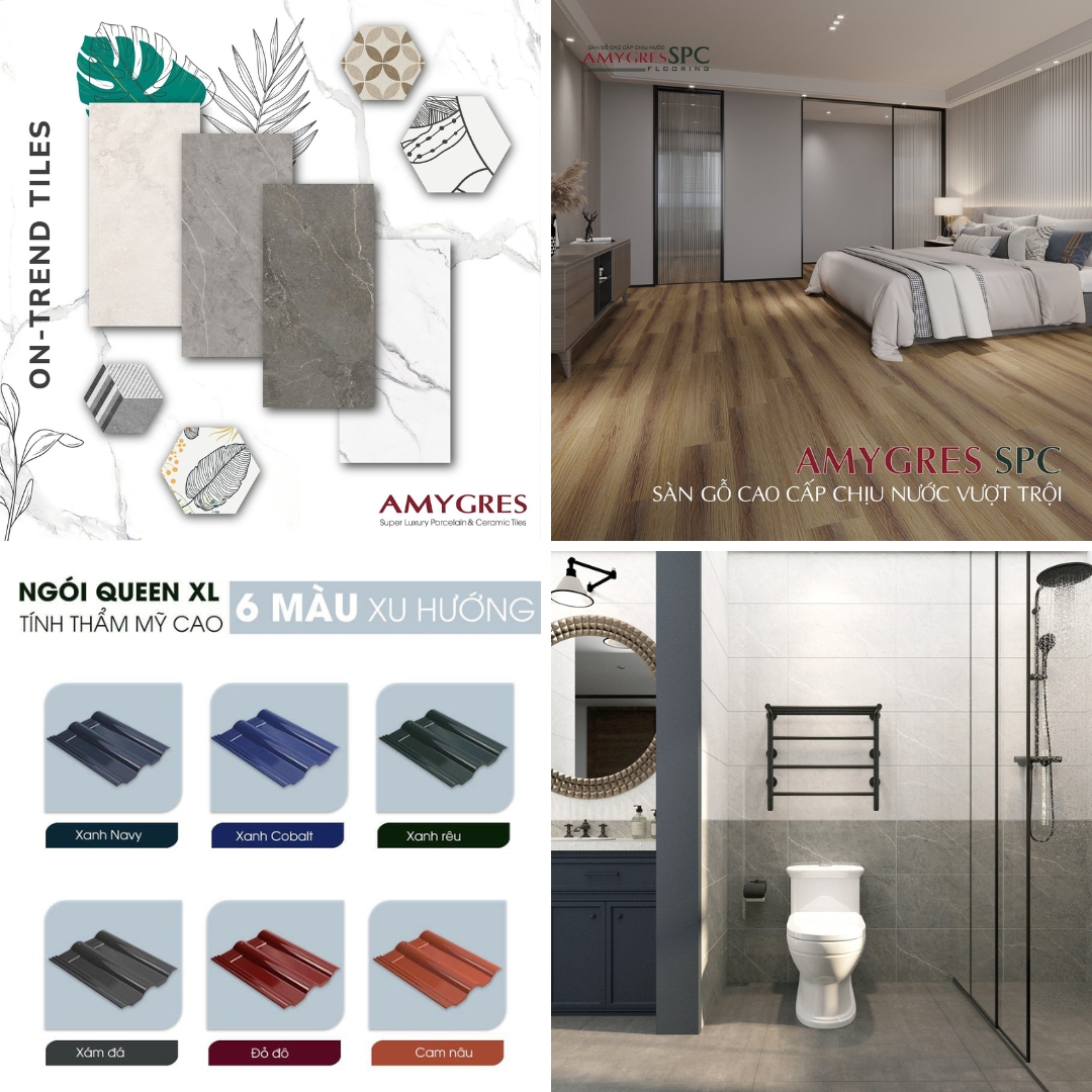 - Ưu đãi giảm cực sâu – Lên đến 40% cho sản phẩm gạch ốp lát AMYGRES, sàn gỗ SPC, ngói gốm tráng men, thiết bị vệ sinh tiêu chuẩn xuất khẩu sang các thị trường như Mỹ, Châu Âu, Hàn Quốc…